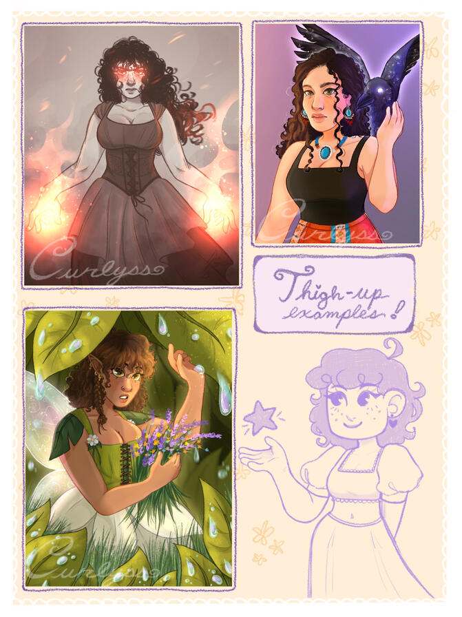 • What I will and won’t draw is listed above.• The commissioned piece is for personal use only!!!• Commissions will be posted on my socials unless requested against.• I will take 2-20 days to complete your commission based on detail and where you are in my queue.• A watermark will be used until full payment is received.