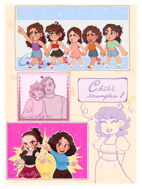 • I take payment through PayPal/Ko-fi only!• Additional characters are $15 extra per character. (chibi prices vary)• A detailed background is $15 extra. (chibi prices vary)• No refunds after the commission is finished.• One revision will be given during the sketch phase.
